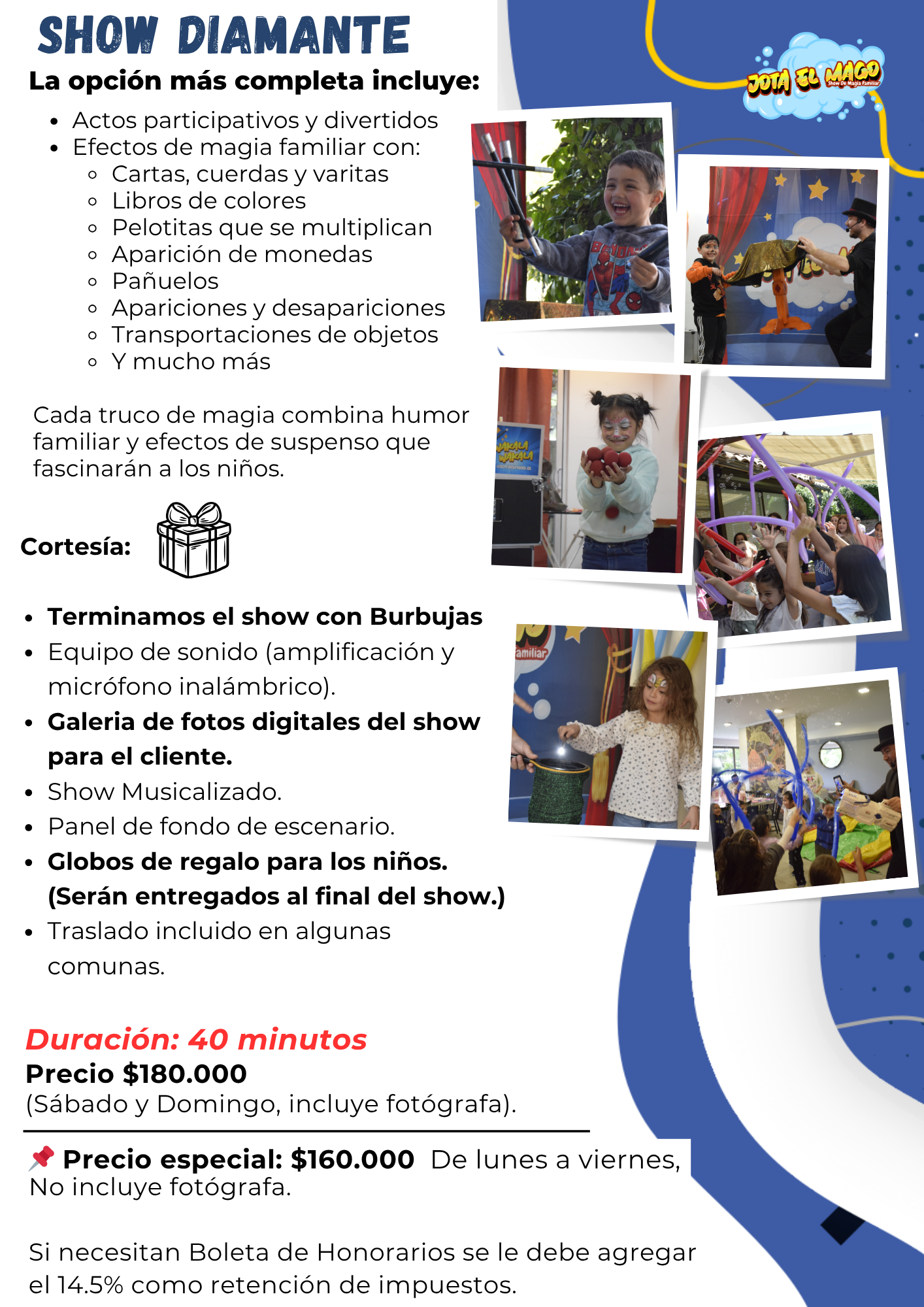 ✨ Diversión y Humor Familiar: Show adaptado para todas las edades, garantizando risas y participación para niños y adultos.